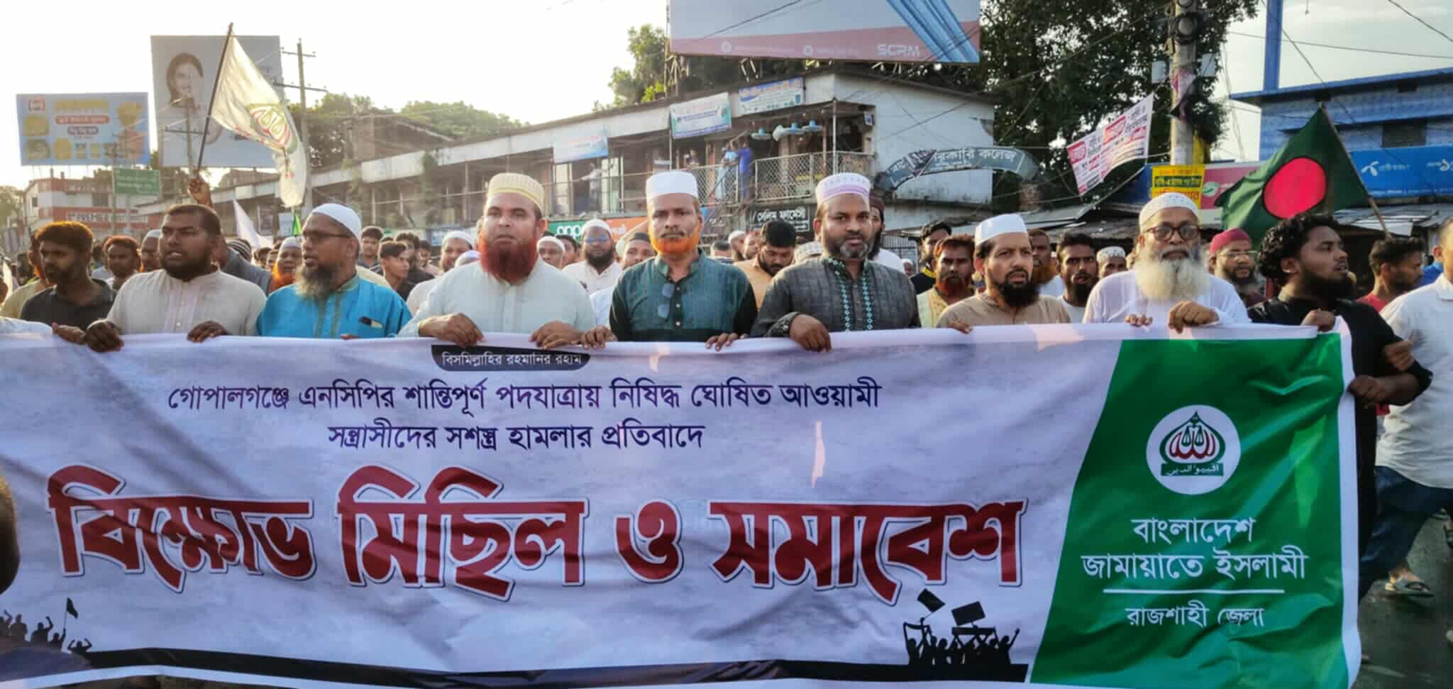 গোপালগঞ্জে এনসিপির শান্তিপূর্ণ সভায় হামলার প্রতিবাদে রাজশাহীতে জামায়াতের বিক্ষোভ