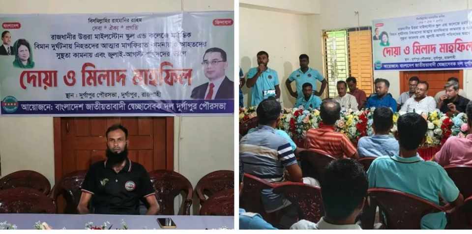 সুস্থতা কামনায় এবং জুলাই-আগস্ট শহিদদের স্নরণে দুর্গাপুর পৌর সেচ্ছাসেবক দলের উদ্যোগে দোয়া ও মিলাদ মাহফিল অনুষ্ঠিত হয়েছে।