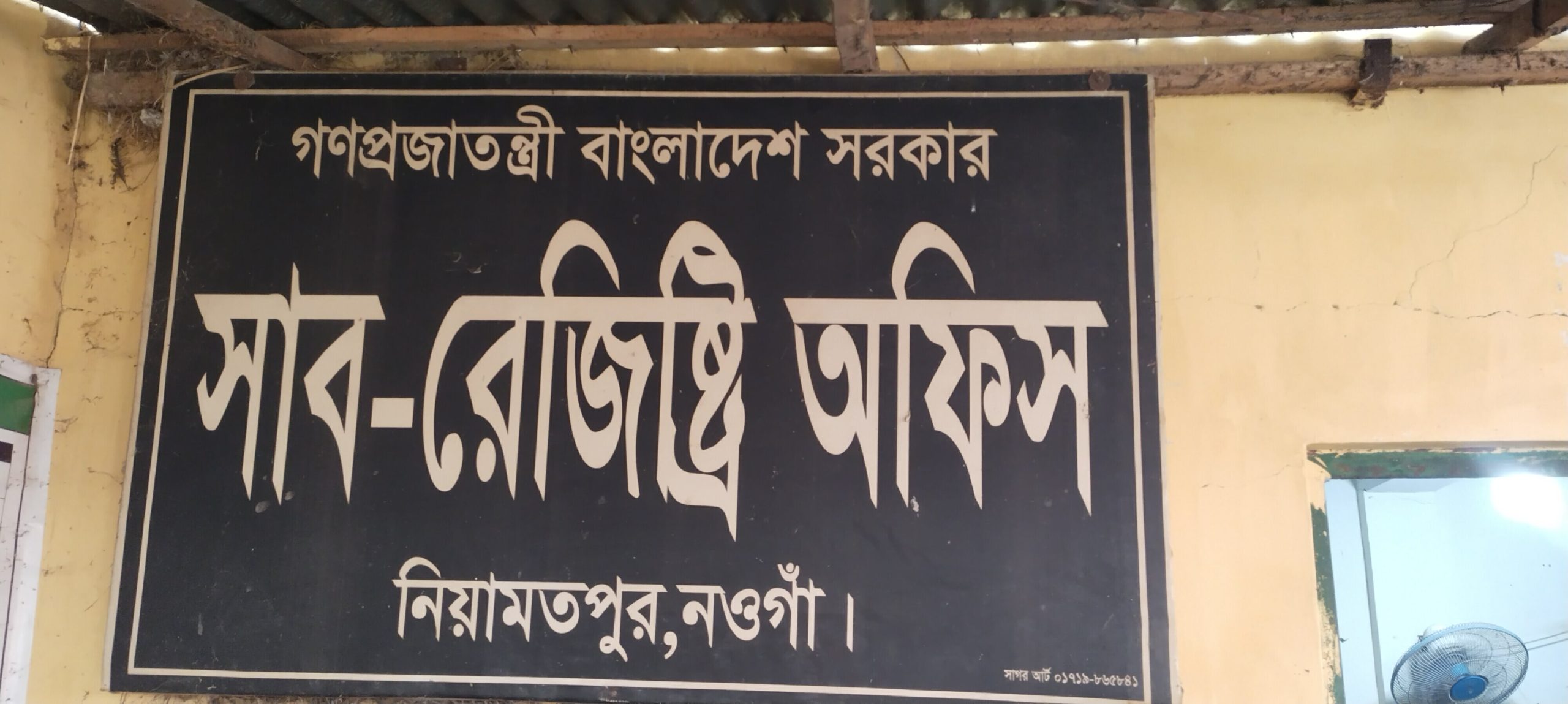 নওগাঁর নিয়ামতপুর সাবরেজিস্ট্রি অফিসের নকলনবিসদের সিন্ডিকেটের কালো থাবায় দিশেহারা হয়ে পড়েছে সেবাগ্রহীতারা। সরকার নির্ধারিত ফি থেকে বেশি নিজের তৈরী আইন করে ইচ্ছেমতো ফি নির্ধারণ করে নকল দলিল দিচ্ছেন নকলনবিশরা। অভিযোগ রয়েছে দলিলের নকল প্রতি নেওয়া হচ্ছে ২০০০ থেকে ২৫০০ হাজার টাকা পর্যন্ত। কেন এত টাকা লাগছে জানালে নকলনবিশরা বলছেন সাবরেজিস্টারের নির্দেশে বেশি টাকা নেওয়া হচ্ছে। সাবরেজিস্ট্রার বাড়তি অর্থ নিজ পকেটে রাখছেন এমন প্রশ্ন তুলেছেন নকল নিতে আসা সেবাগ্রহীতারা।
