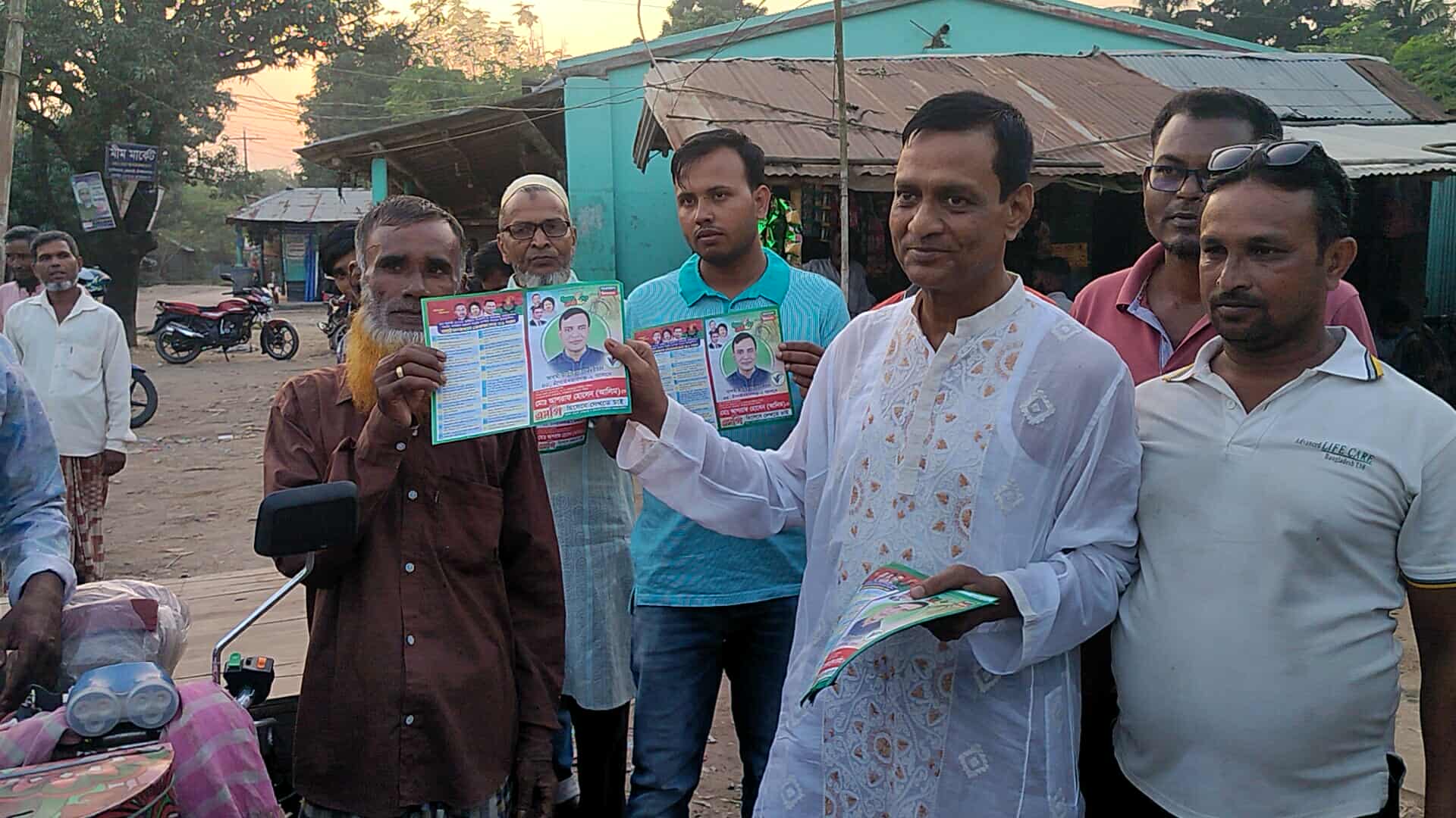 ভোলাহাটে বিএনপির মনোনয়ন প্রত্যাশী আশরাফ হোসেন আলীমের ৩১দফা লিফলেট বিতরণ।