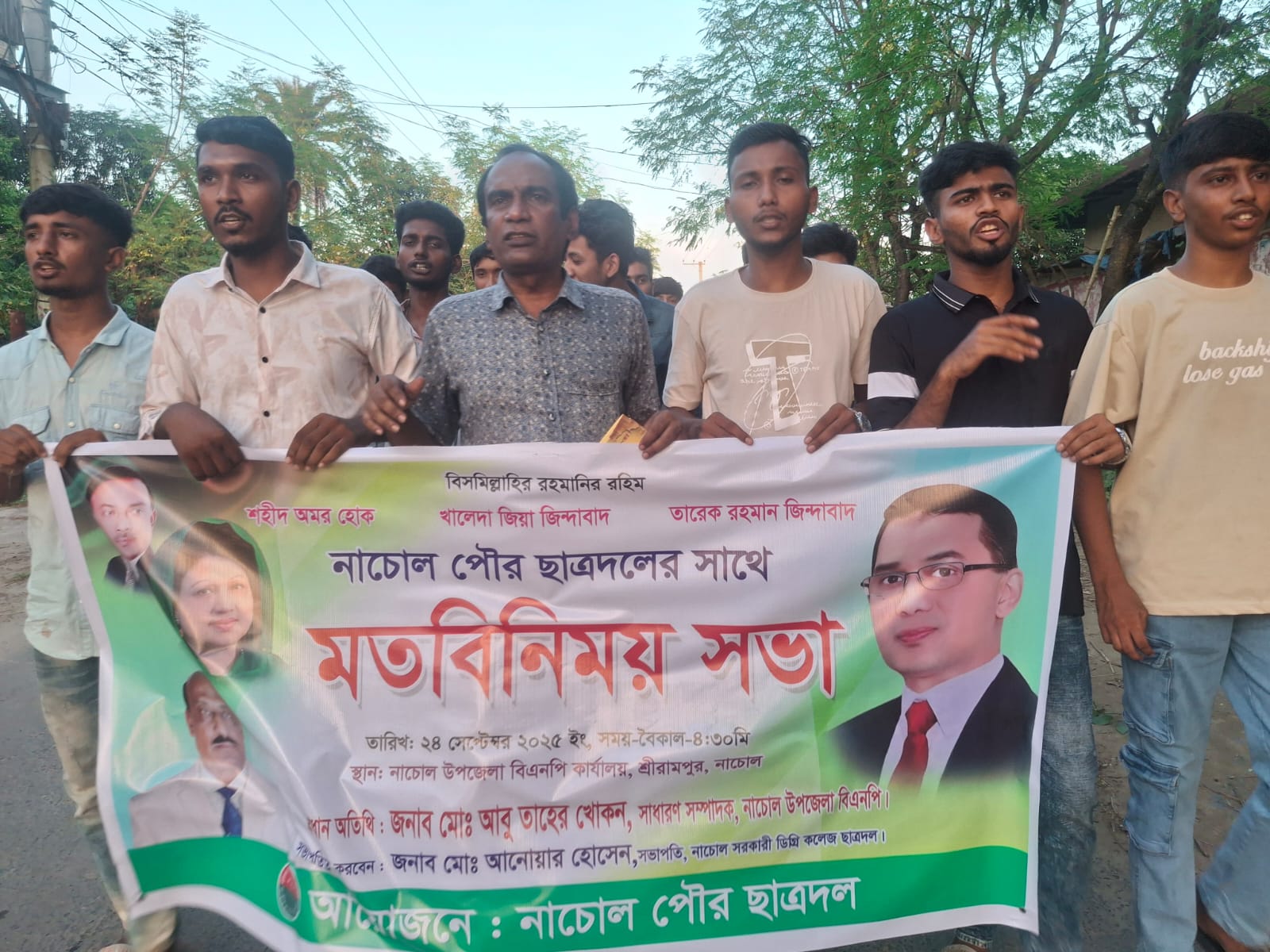 চাঁপাইনবাবগঞ্জের নাচোল উপজেলায় বিএনপি’র ভারপ্রাপ্ত চেয়ারম্যান তারেক রহমান ঘোষিত ৩১ দফা রাষ্ট্র কাঠামো বাস্তবায়নের লক্ষ্যে লিফলেট বিতরণ, পথসভা গণসংযোগ