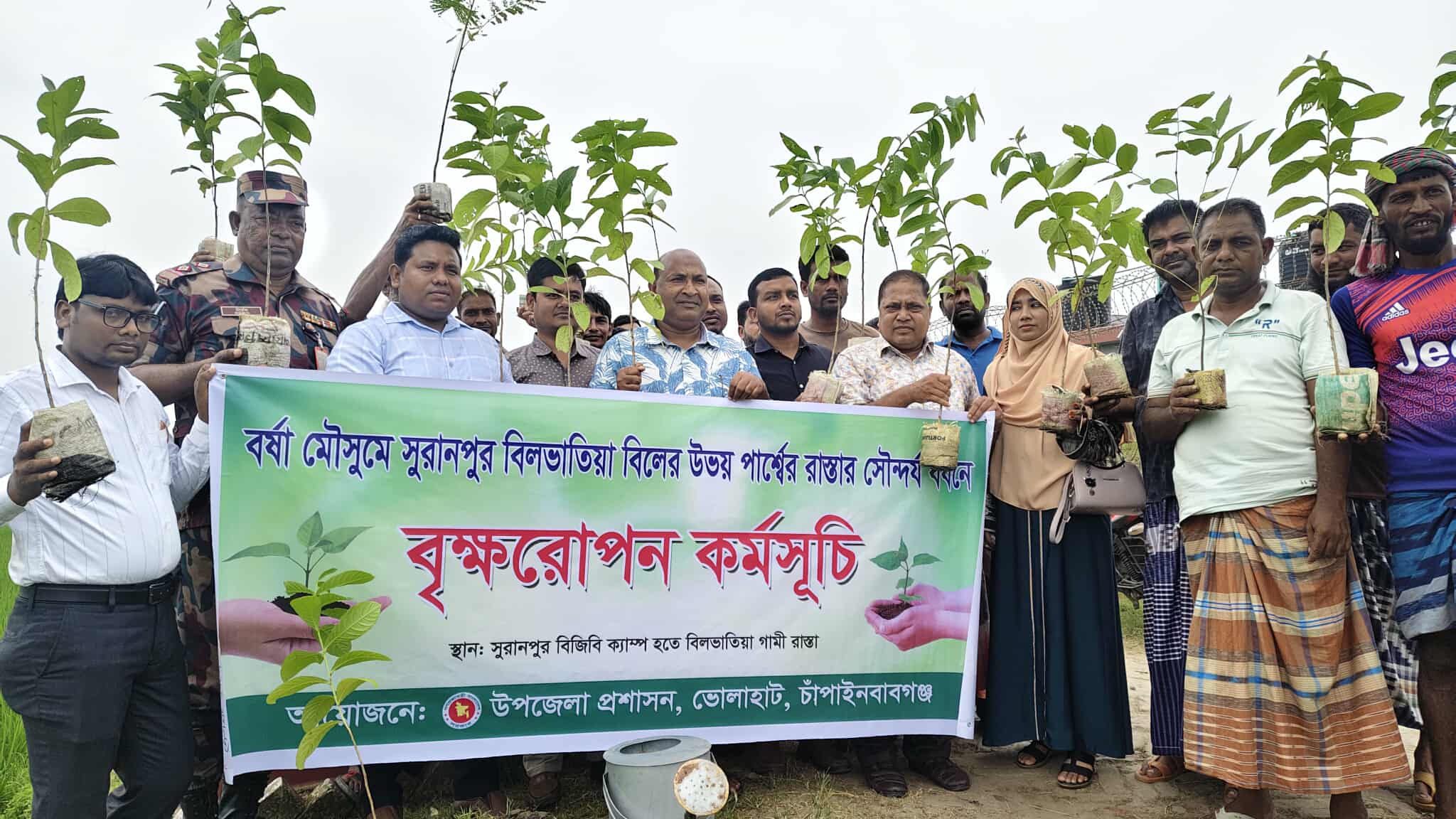 মোঃ শাহ কবির ভোলাহাট (চাঁপাইনবাবগঞ্জ) প্রতিনিধিঃ চাঁপাইনবাবগঞ্জের ভোলাহাটে অজপাড়াগাঁয়ের বিলের মধ্যে প্রায় ৪ কিলোমিটার রাস্তার সৌন্দর্য বর্ধণে বনজ ও
